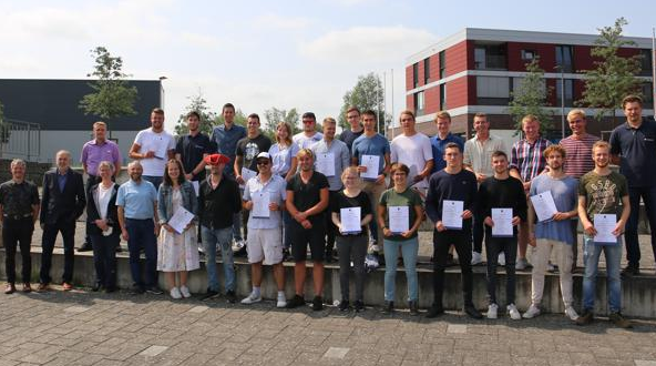 Schmele richtete seine Worte während der launigen Verabschiedung an 25 junge Frauen und Männer, die nun nach dreijähriger Ausbildung entlassen wurden. Vier davon – Pia Bahr, Daniel Birk, Tim Ulrich und Felix Wenigmann – erhielten für besonders gute Leistungen sogar Auszeichnungen. Aber das spielte nur am Rande eine Rolle. Denn alle Absolventen waren glücklich und zufrieden.